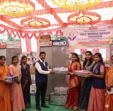 स्वागथी विवाह सहायता फाउंडेशन एक सामाजिक संस्था है, जो अनाथ, असहाय एवं आर्थिक रूप से कमजोर परिवारों की बेटियों के उज्ज्वल भविष्य के लिए कार्य कर रही है। हमारा मुख्य उद्देश्य बेटियों को सम्मानपूर्वक विवाह सहायता प्रदान करना और समाज में बाल विवाह जैसी कुरीतियों को रोकना है।